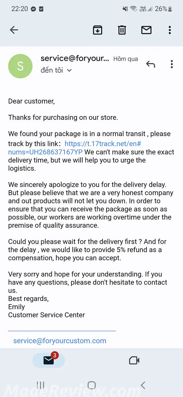I ordered before Mother's Day I think and I still haven't gotten it yet nor a tracking number they have refunded me 2$!! Like hell no!!! So I emailed back and I better get what I paid for back since I can't find where my order is. Not happy and I wish I knew of this because I would of gotten it on a different site I know that won't dog around like for your custom