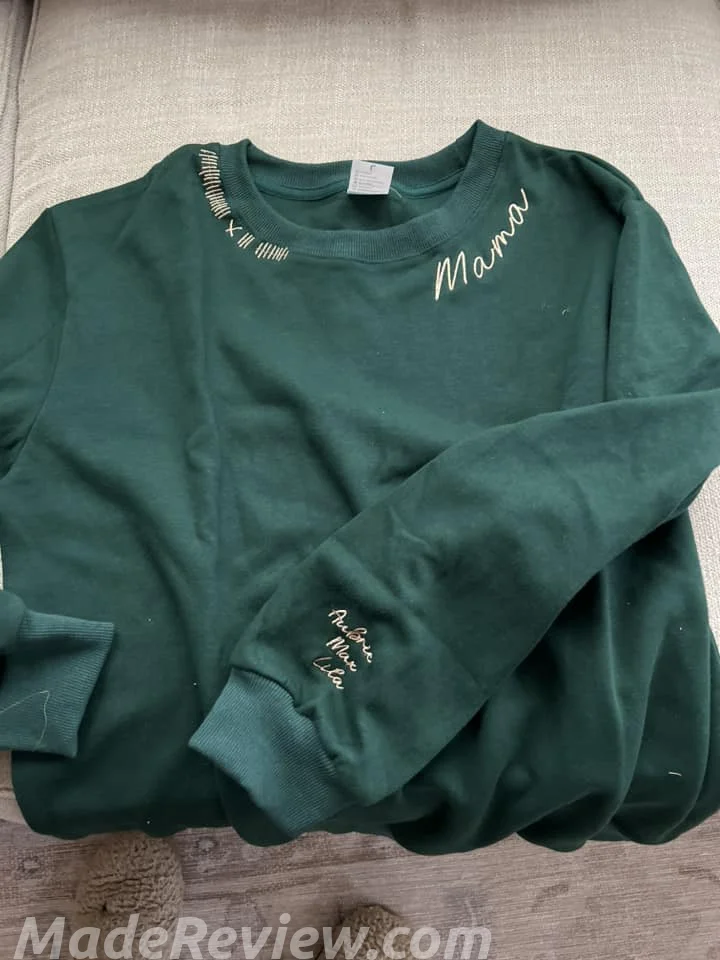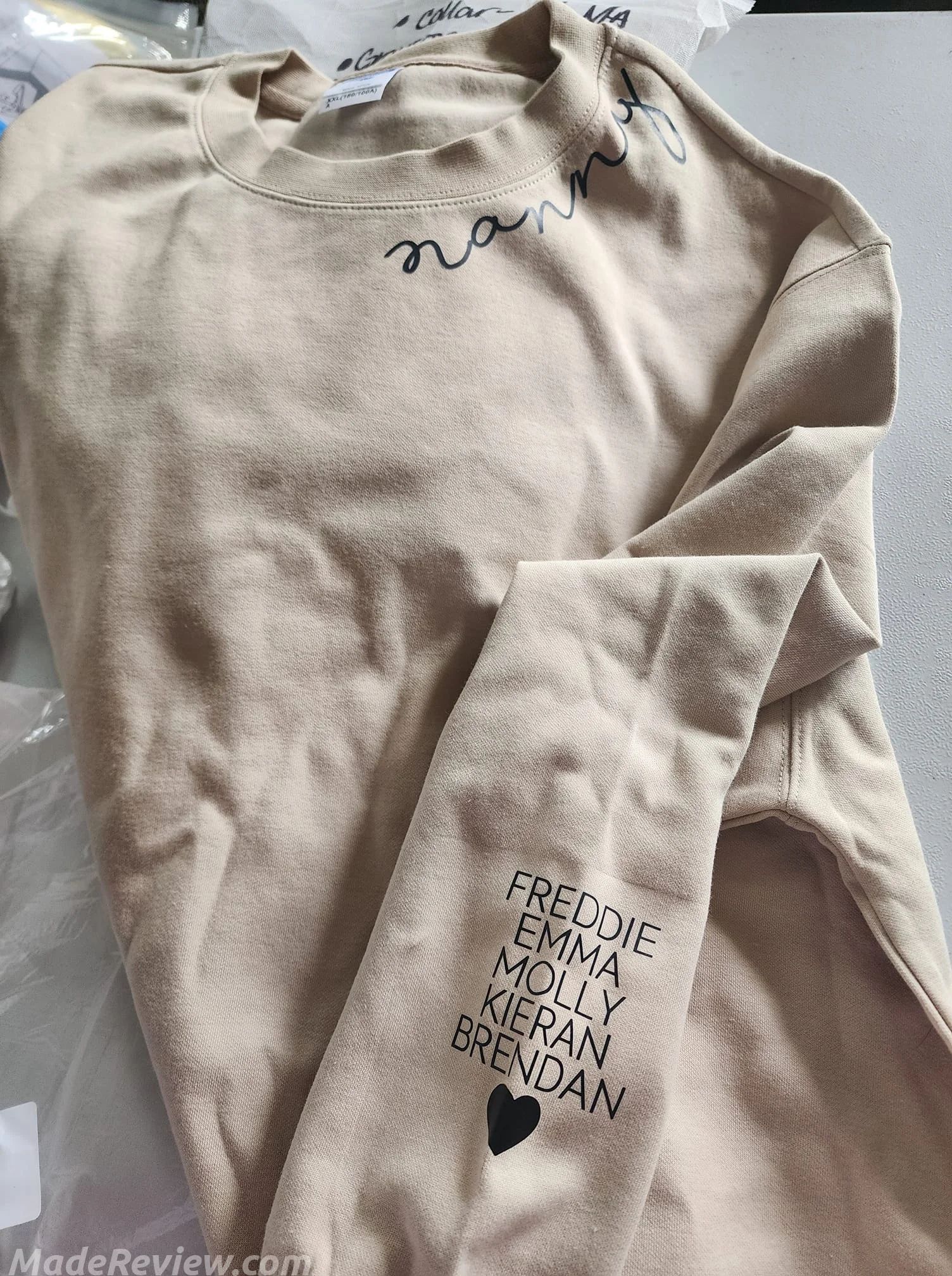 I ordered a sweatshirt with the names of my 3 children on the sleeve. I love it. I have received many compliments